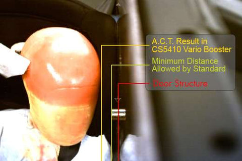The 2010 revision of the Australian Standard introduced new performance requirements for side-impact testing. The biggest change was that in order to pass the Standard, child restraints had to demonstrate the ability to not only prevent the dummy's head from contacting the door, but keep the dummy's head away from the door.